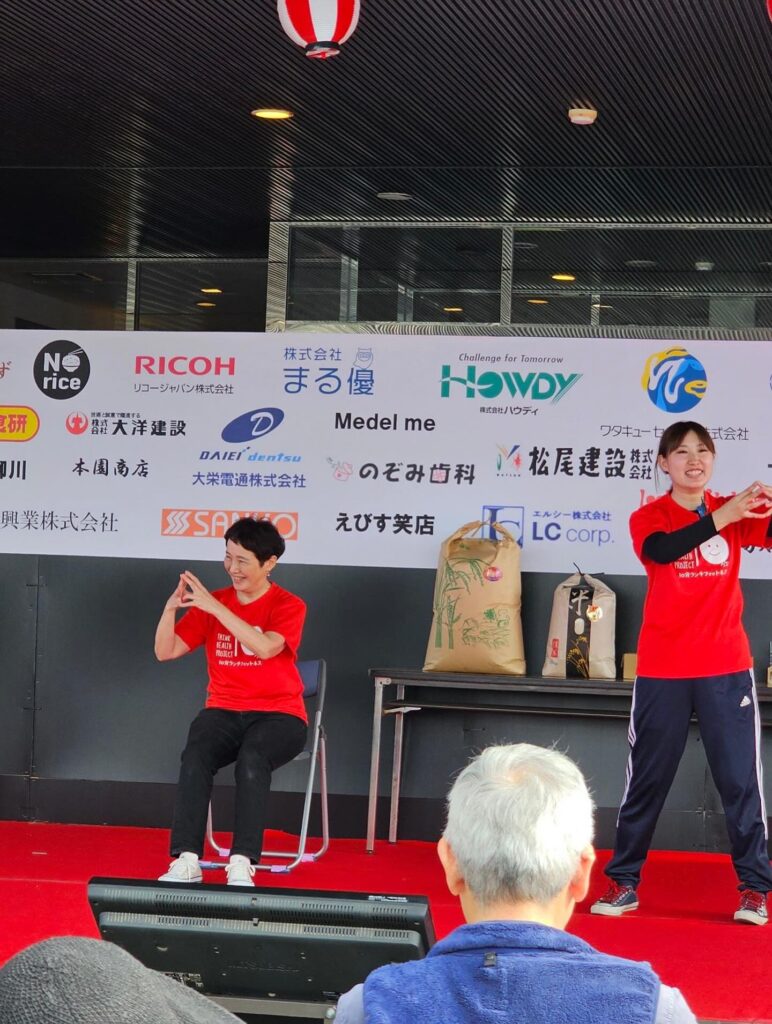 ステージ上がる直前まで、一生懸命リードの練習 をし、職員の皆様のあたたかい応援 の中、会場が一体感に包まれました。代表のはーなも応援に駆けつけました。